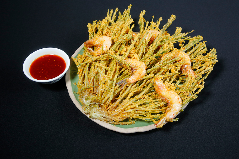 - ผักลิ้นห่านผัดกุ้ง